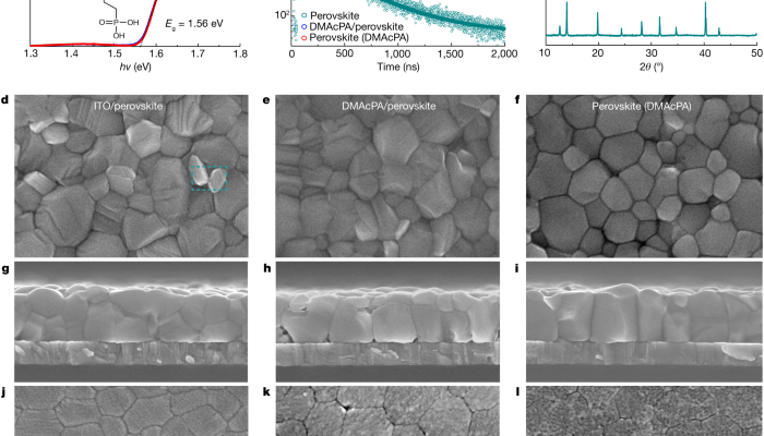This Nature article (preprint preview) describes a materials and interface engineering strategy that substantially improves inverted tin-based perovskite solar cells (TPSCs). The team introduces a phosphonic-acid-based molecular film placed at the buried interface between the hole transport layer and the tin perovskite. This film creates a homogeneous interfacial layer with energy-level matching and a superwetting underlayer that directs the growth of uniform Sn-perovskite films with fewer defects and lower non-radiative recombination.