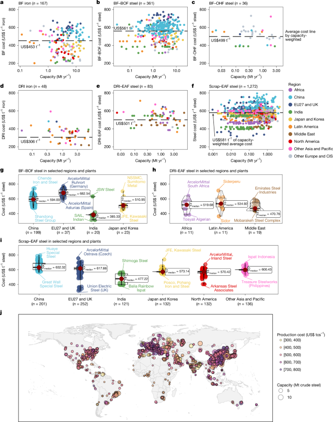 Source: Technological pathways for cost-effective steel decarbonization — Nature (Wu et al., 2025)