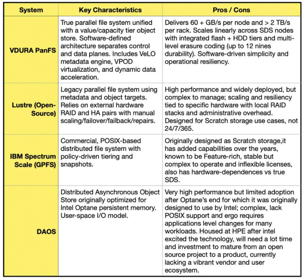 • Metadata scaling and low latency are critical; distributed metadata engines (VDURA’s VeLO example) and key‑value metadata approaches are rising in importance.